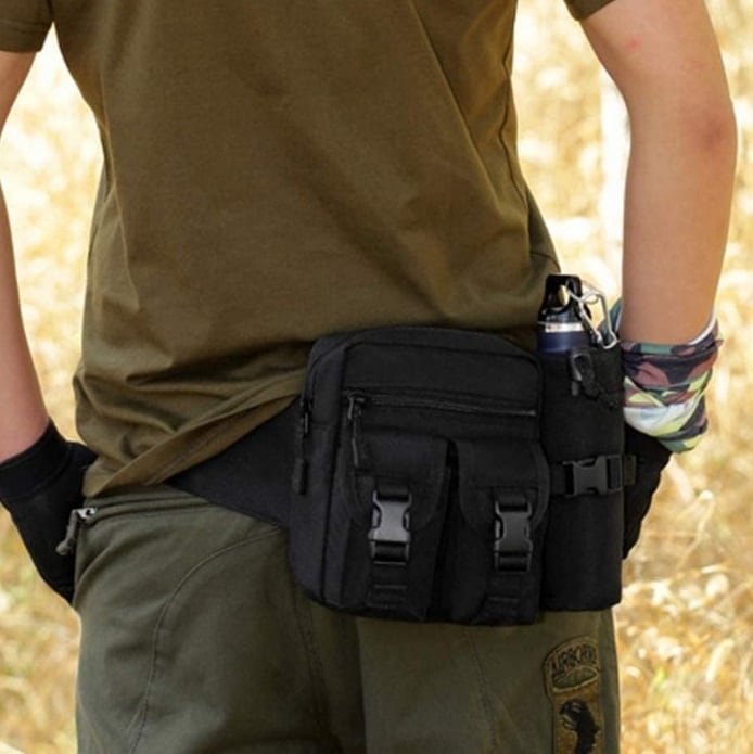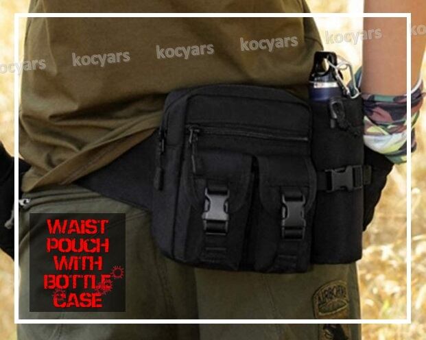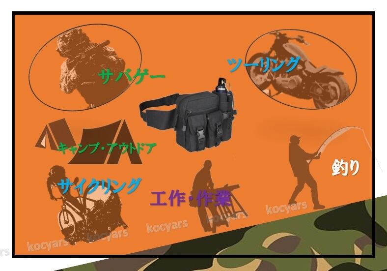 【KOCYARSおすすめ商品】送料無料!!レッグポーチ ウエストポーチ ボトルケース付 ツーリング 釣り アウトドア サバゲー 作業バッグ カラー【ブラック】 メンズ レディース 【防滴素材のナイロン】